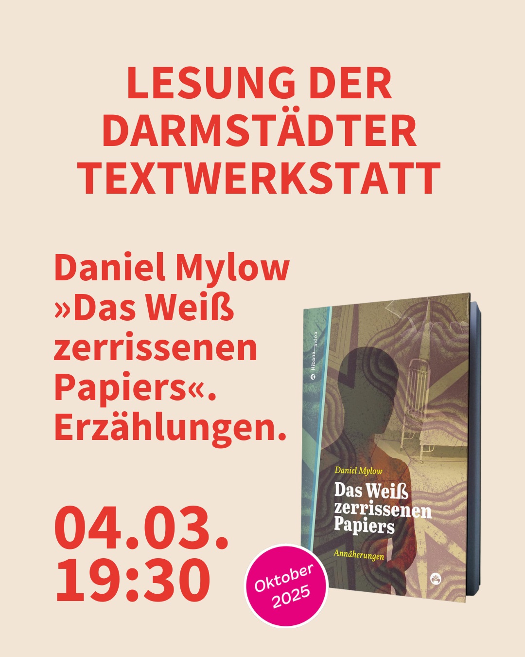 Buchvorstellung, Daniel Mylow: „Das Weiß zerrissenen Papiers“. Erzählungen. Lesung der Darmstädter Textwerkstatt / Lesebühne.