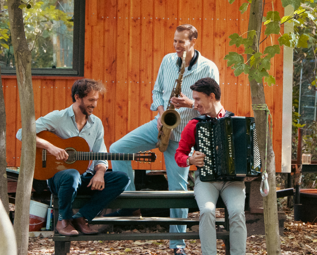 Esquinas de Nuez („Nussecken“) verbindet Tango- und Jazzästhetik mit Einflüssen aus Klezmer und Balkanmusik. Andrii Fesenko (Akkordeon), Axel Schmitt (Klarinette/Saxofon) und Jeremy Fast (Gitarre) vereinen spielerische Energie mit feiner Klangkunst. Mit „Viajando – vom Reisen“ lädt das Trio zu einer musikalischen Entdeckungsreise von Buenos Aires über mediterrane Häfen bis in entlegene Winkel Europas ein.