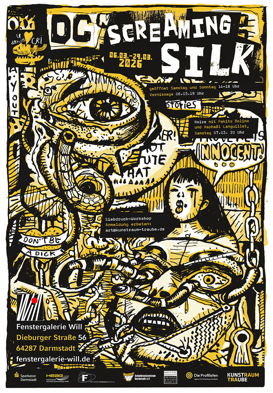 Zum Tag der Druckkunst zeigen die Fenstergalerie Will und der KunstRaum Traube die zweiteilige Ausstellung Screaming Silk.