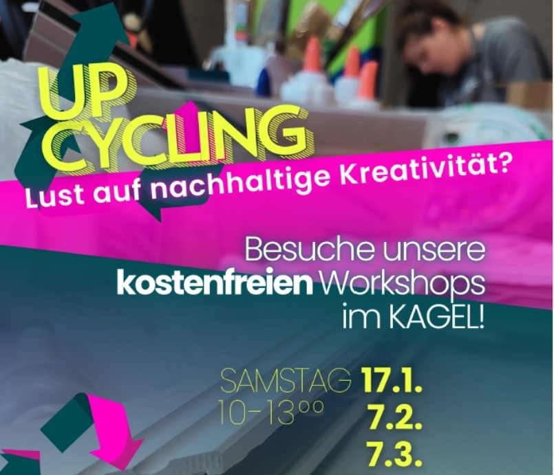 Upcycling bezeichnet, aus etwas Altem etwas Neues zu erschaffen. Scheinbar nutzlose Dinge arbeitet man zu etwas Neuem um. Somit werden Ressourcen geschont. Arbeitsmaterial wie Farbe, Klebstoffe oder Werkzeuge sind vor Ort vorhanden. Darüber hinaus können Materialien mitgebracht oder Gegenstände für geringe Beträge im KAGEL erworben werden.