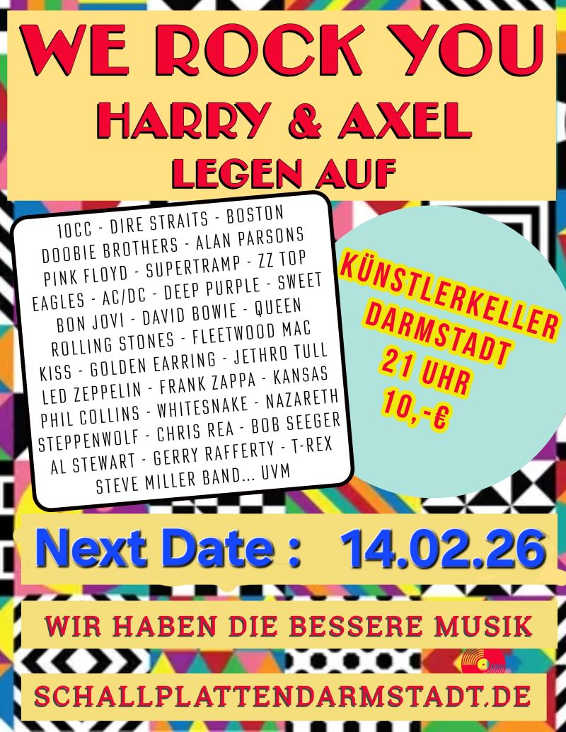"Wir freuen uns immer über die zahlreichen Freunde, Fans und Besucher der "WE ROCK YOU Night" Die Besondere Auswahl, auch Titel mit "schon Ewig nicht mehr gehört" Effekt sind beliebt und werden von uns gerne aufgelegt."