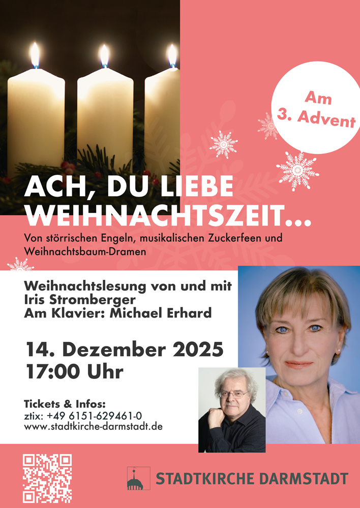 Unter dem augenzwinkernden Titel „Ach, du liebe Weihnachtszeit… Von störrischen Engeln, musikalischen Zuckerfeen und Weihnachtsbaum-Dramen“ gibt Iris Stromberger heitere wie besinnliche Geschichten zum Besten.