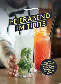 "Das tibits Bio-Restaurant Darmstadt heißt euch zum geselligen Feierabend willkommen. Einmal im Monat, immer am zweiten Mittwoch des Monats, laden wir euch ab 17 Uhr dazu ein, den Feierabend bei leckeren Snacks, gekühlten Drinks und guter Musik ausklingen zu lassen. Einfach ein gemütliches Plätzchen drinnen oder auf unserer sonnigen und gemütlichen Terrasse suchen und genießen.