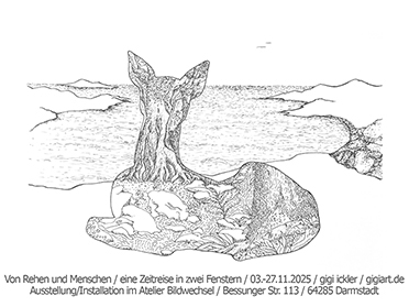 Von Rehen und Menschen, eine Zeitreise in zwei Fenstern - Ausstellung/Installation mit Arbeiten von Gigi Ickler vom 03.-27.11.2025.