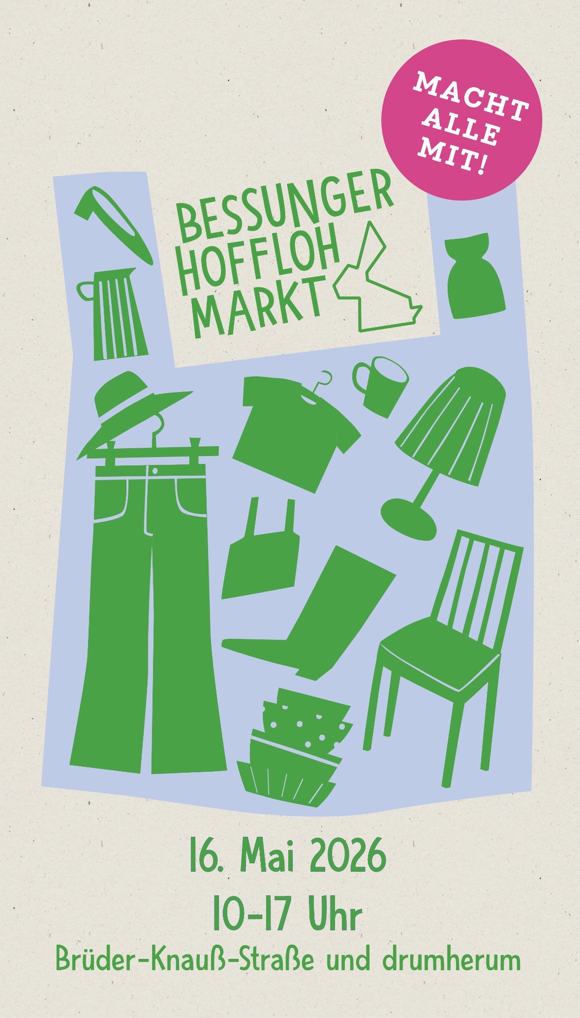 Am Samstag, 16. Mai 2026 (10–16 Uhr), wird Darmstadt- Bessungen wieder zur offenen Flaniermeile: Beim Bessunger Hofflohmarkt öffnen Anwohnerinnen und Anwohner ihre Höfe, Gärten und Garagen – zum Stöbern, Plaudern und Entdecken.