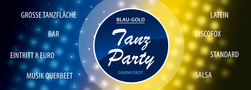 "Die Blau-Gold Tanzparty ist ein Tanzabend für Jeden, der gerne in schöner Atmosphäre das Tanzbein schwingen möchte. Egal, ob Sie Hobbytänzer, Tanzschüler, Breitensportler oder Turniertänzer sind.