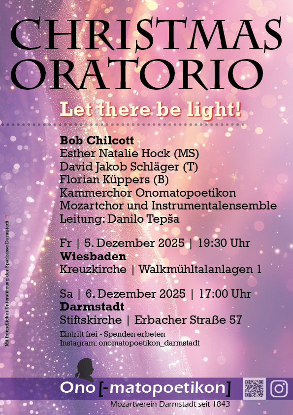 Ausführende: Kammerchor Onomatopoetikon, Mozartchor Darmstadt, David Jakob Schläger (Tenor), Esther Hock (Mezzosopran), Florian Küppers (Bass) und Instrumentalsolisten.