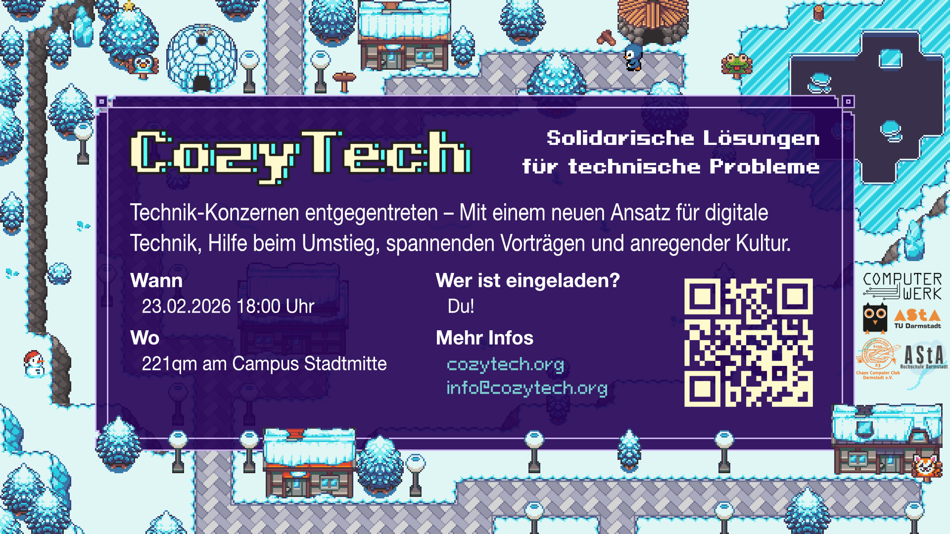 Lausche Impulsvorträgen von Expert:innen, tausche Dich aus, erhalte Unterstützung beim Umstieg; all das und noch mehr gibt’s bei CozyTech!