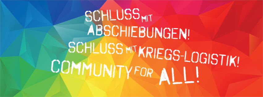„Schluss mit Abschiebungen! Schluss mit Kriegs-Logistik! Community for All!“ am Luisenplatz Darmstadt