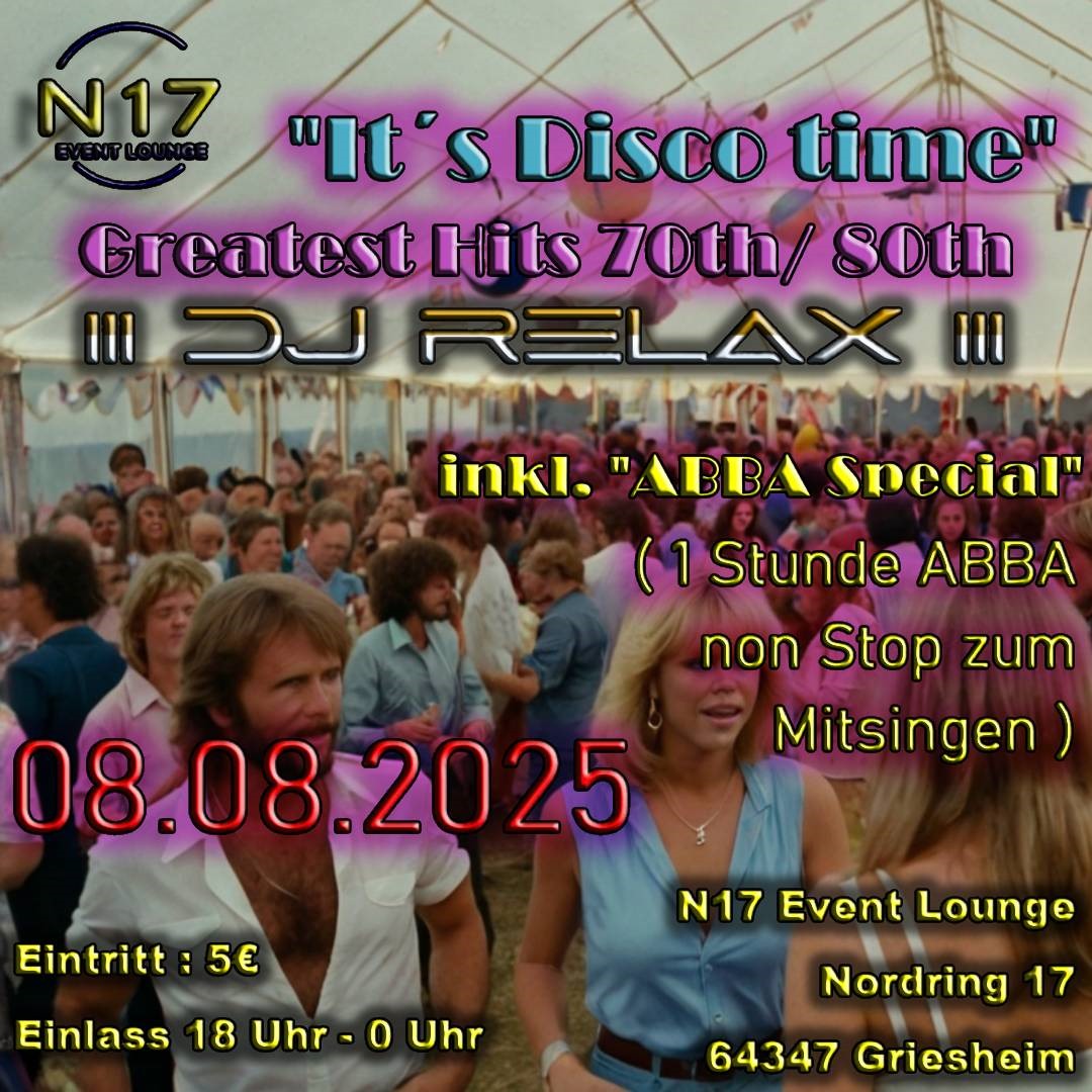 Mit "Special ABBA Event": 1 Stunde ABBA Hits nonstop. Gute Laune garantiert. Tanzen und Feiern wie früher .... Nur im N17.