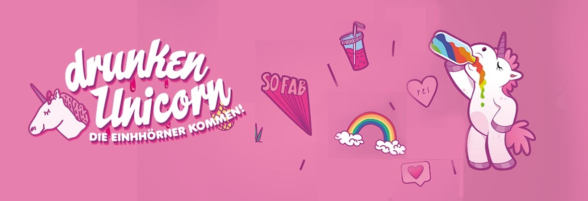 Heute Nacht siehst du überall diese bunten Dinger, kotzt gegen Regenbögen und gehst mit Glitzer im Schlüppa nach Hause! Denn die Drunken Unicorns übernehmen den Club! Feiert mir uns ein buntes Festival voller Liebe, Abriss und purer Glückseligkeit!"