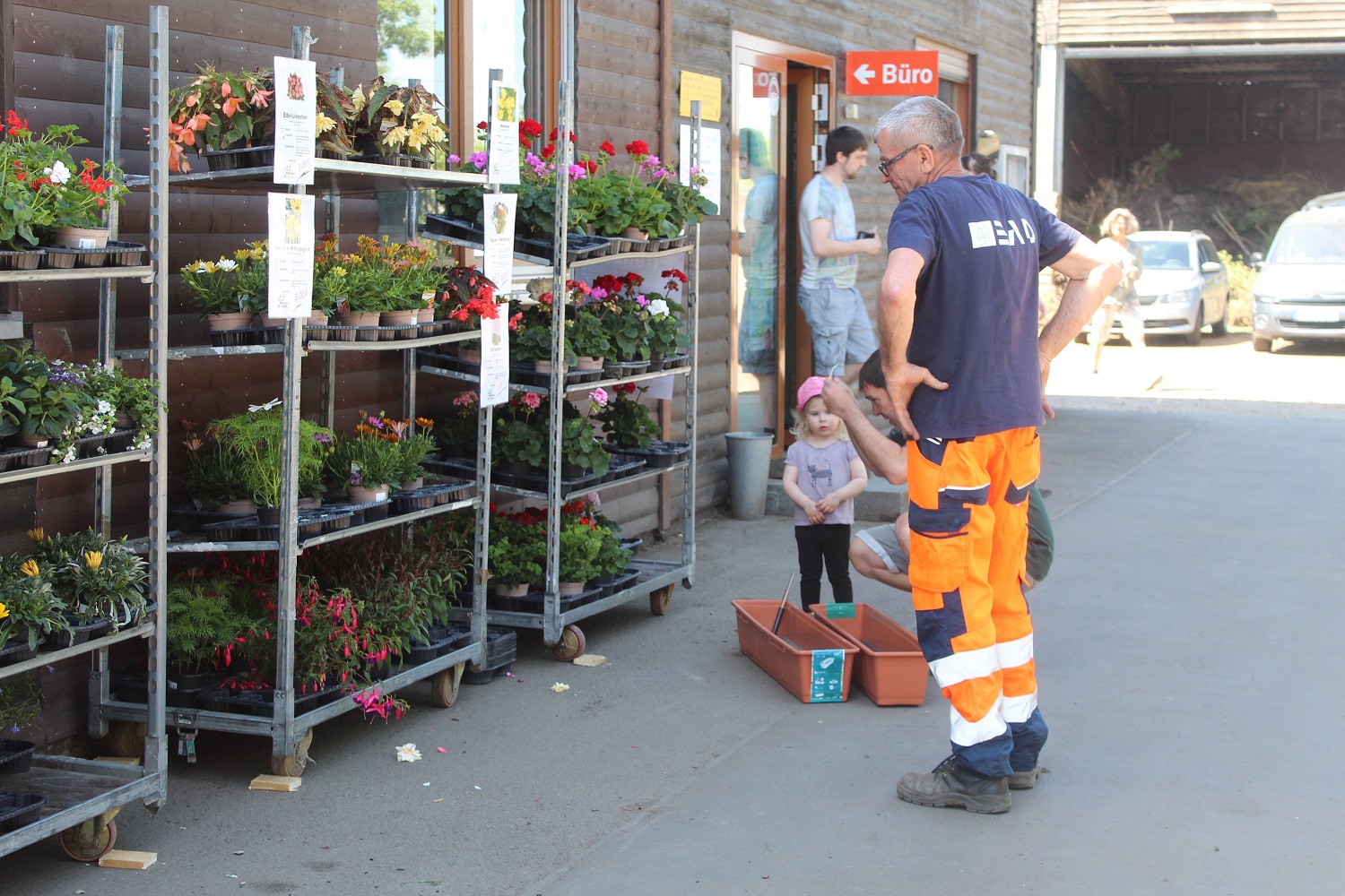 Kundinnen und Kunden können mitgebrachte Balkonkästen und Kübel nach individuellem Wunsch von der Gärtnerei Aumühle preisgünstig bepflanzen lassen. Ob Geranien, Petunien oder Margeriten: Die Gärtnerei Aumühle aus Wixhausen stellt eine Auswahl von Kübel- und Balkonpflanzen zur Verfügung. Zur Versorgung der Pflanzen wird Blumenerde, basierend auf dem RAL-zertifizierten Darmstädter Qualitätskompost, verwendet.