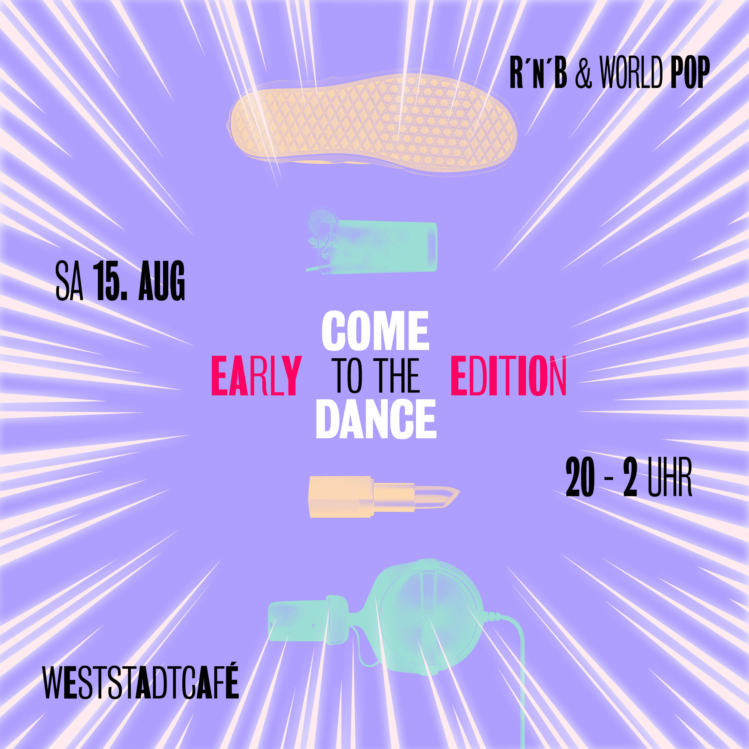 Die EARLY EDITION liefert jetzt das perfekte Partyformat für alle, die eine gute Zeit haben wollen, ohne am nächsten Morgen gerädert aufzuwachen. Gespielt werden u. a. Beyoncé, The Neptunes, Rihanna, Sean Paul, Aaliyah, Michael Jackson, Shakira, Timbaland, Ayliva, Burna Boy, Whitney Houston, Bruno Mars und mehr – liebevoll und manchmal überraschend zusammengestellt.