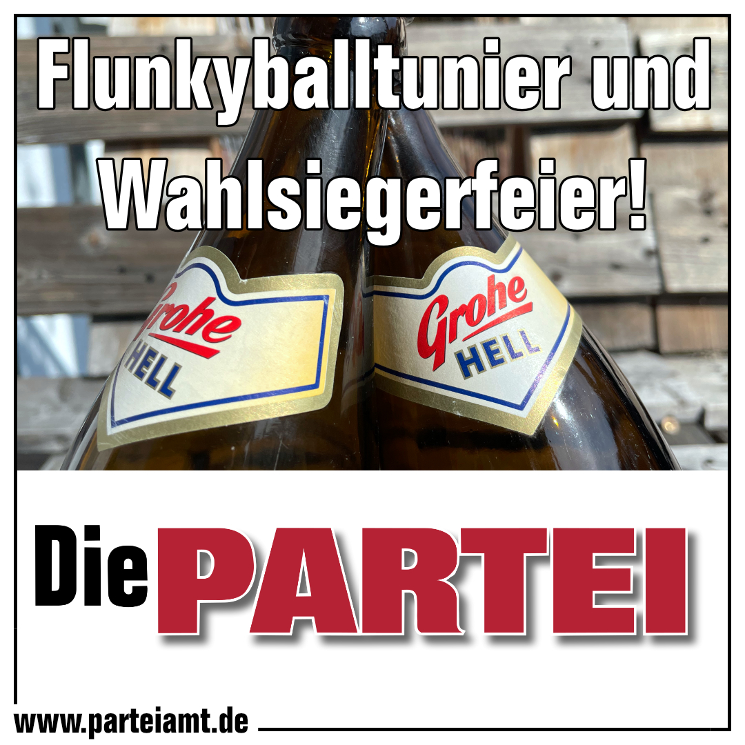 "Am 25.09.2021, also einen Tag vor der Bundestagswahl, habt ihr die einmalige Möglichkeit den Wahlsieg der Partei DIE PARTEI mit uns zu feiern.
