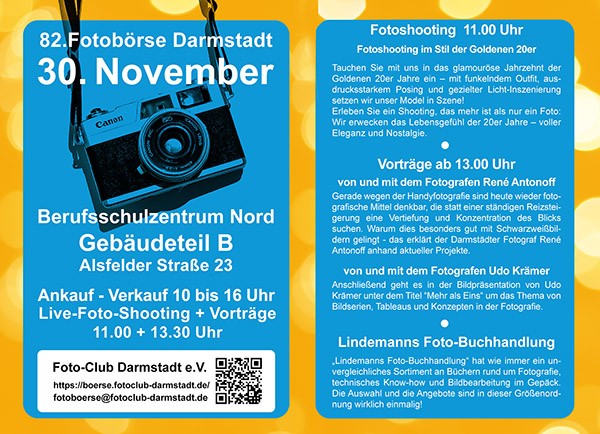 Die Darmstädter Fotobörse, die vom Fotoclub Darmstadt veranstaltet wird, findet 2025 bereits zum 82. Mal statt.