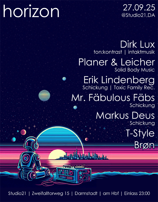 "Nach dem erfolgreichen Auftakt im Februar laden wir Euch zur zweiten Party unserer horizon Reihe im Darmstädter Studio 21 ein!
