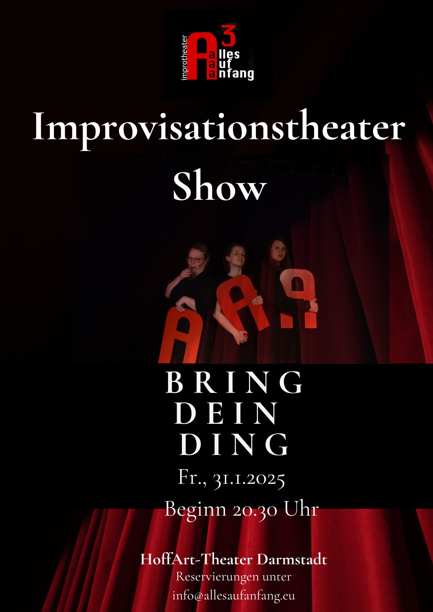 "Heute präsentiert das Ensemble "Alles auf Anfang" die Show "Bring dein Ding". Improvisationstheater vom Feinsten.