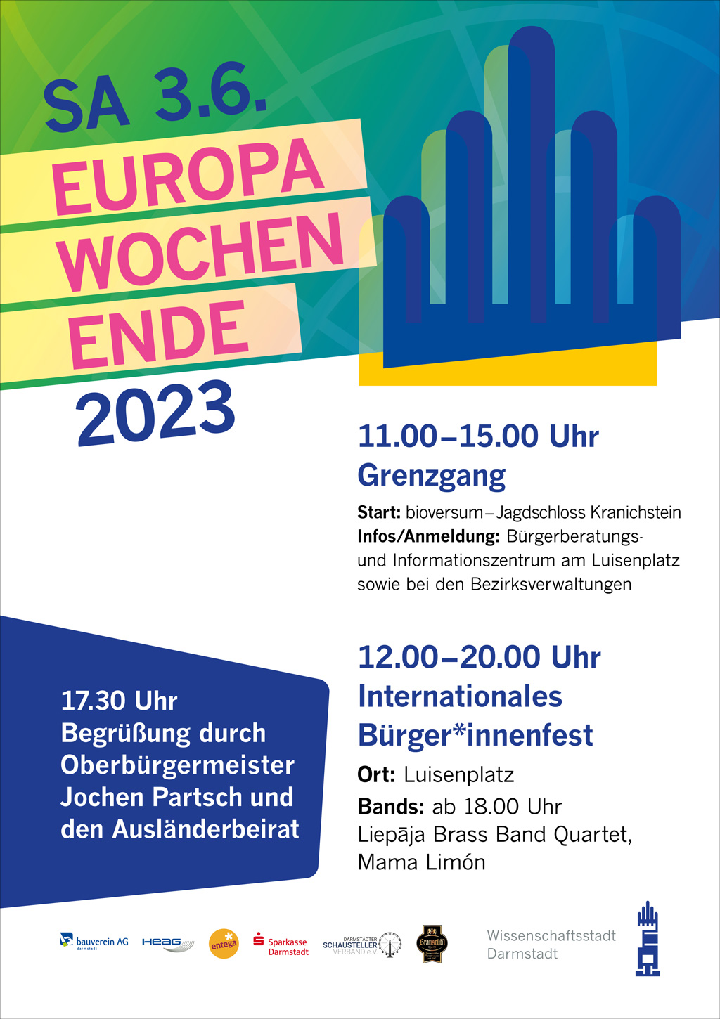 Am 03. Juni 2023 laden Oberbürgermeister Jochen Partsch und der Ausländerbeirat der Wissenschaftsstadt Darmstadt ab 12.00 Uhr zum neunten Internationalen Bürger*innenfest auf dem zentralen Luisenplatz ein.