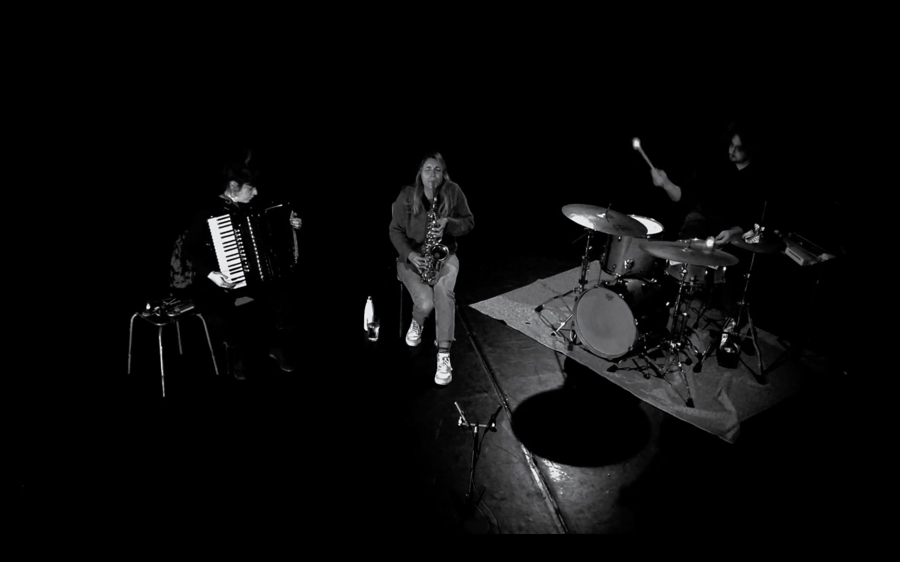 Seit 2019 arbeiten und leben die franko-serbische Akkordeonistin Emilie Škrijelj und der belgische Schlagzeuger Tom Malmendier zusammen und erforschen dabei die fast unmöglich scheinende Interaktion von Ziehharmonika, Trommeln und Turntables. Die aus dem Libanon stammende Christine Abdelnour stieß im Februar 2022 hinzu, als Les Marquises beim Festival "Un Pavé dans le Jazz" in Toulouse eine "Carte Blanche" angeboten wurde. Sie entschieden sich für die in Paris lebende Altsaxophonistin. Daraus erwuchs ein rein akustisches Trio, das spürbar der unbedingte Wille eint, die musikalischen Möglichkeiten ihrer Instrumente durch eine sensible Dramaturgie und fragile Klangstrukturen, nachhaltig zu erforschen. Dem Publikum bleibt zu empfehlen, ihren Improvisationen mit offenem Herzen zu lauschen.