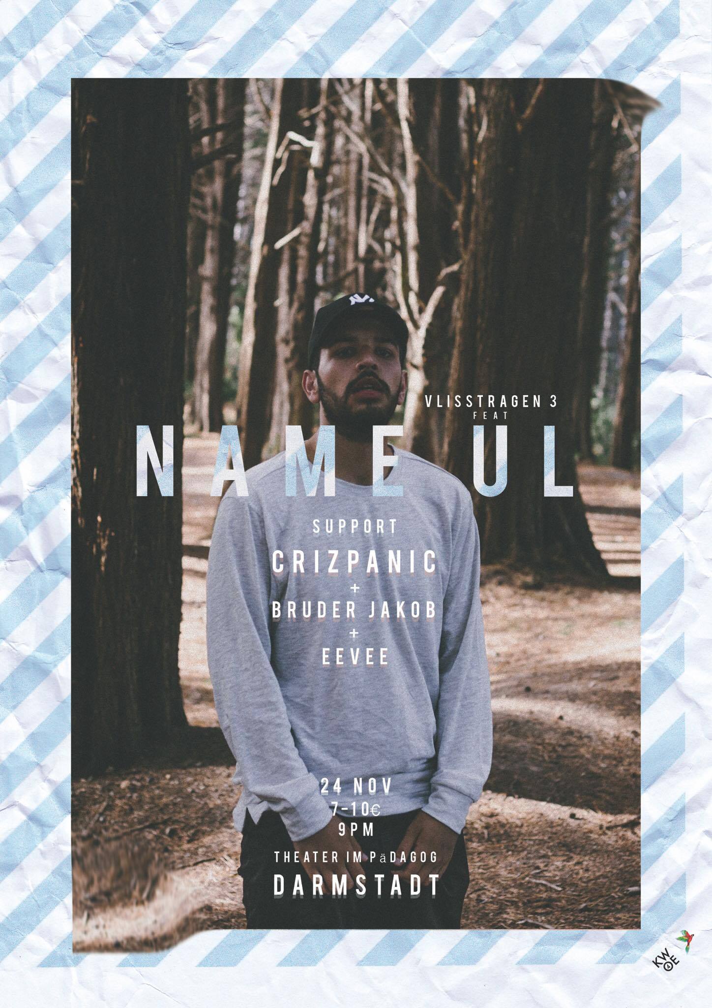 "Zu Vlisstragen 3 begrüßen wir den neuseeländischen Rapper Name UL sowie die beiden Darmstädter Crizpanic und Bruder Jakob im TIP. Zum Warm up dürfen wir uns auf ein exklusives Set der niederländischen Produzentin Eevee freuen."