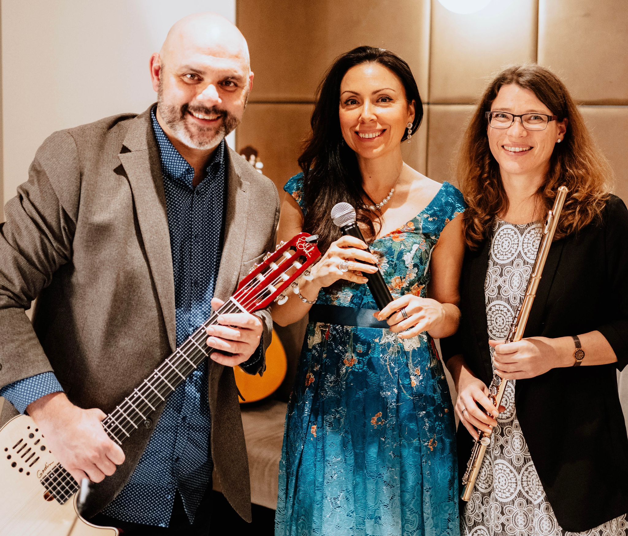 Das Trio „Canta Brasil“, das sind die Sängerin Paula Carreira, die Flötistin Nina Groschup und der Gitarrist und Arrangeur Humberto Colacio. Sie interpretieren Stücke bekannter brasilianischer Komponisten wie Tom Jobim, Noel Rosa e Vinícius de Moraes, aber sie geben uns auch die Gelegenheit hier nicht so bekannte Protagonisten der Música Popular Brasileira kennenzulernen. Die Arrangements betonen den rhythmischen, melodischen, harmonischen und poetischen Reichtum, der sich in den verschiedenen Stilen präsentiert: Samba, Bossa Nova, Forró und Choro.