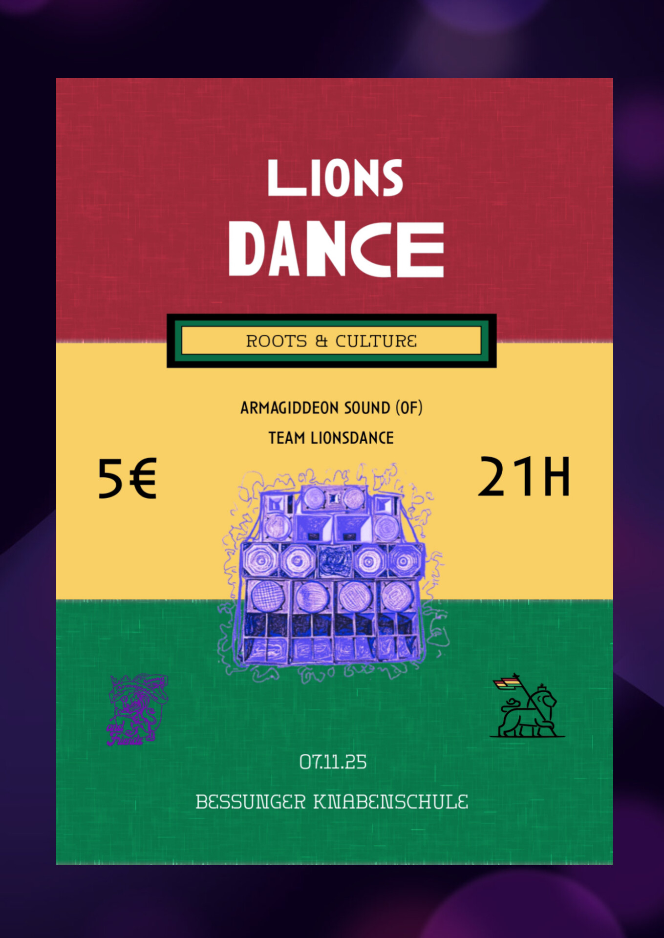 Außer Armagiddeon steht natürlich auch wie immer das Team Lions Dance hinter den Decks, bestehend aus DiddiK, Jahkoby und Irie Jay."
