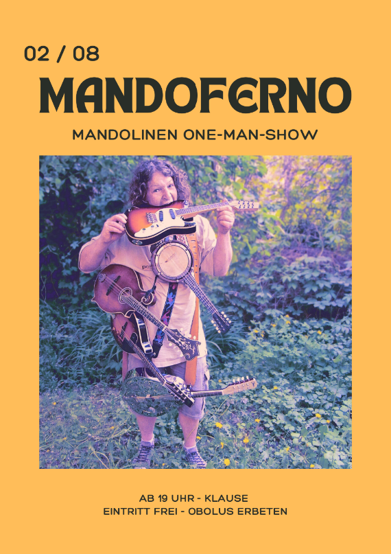 Viele Jahre, seltene, besondere Konzerte - der stadtbekannte Musiker und Multi-Instrumentalist Wolfgang "Wolfy" Haselberger begibt sich mal wieder in die Rolle des "Mandoferno" und verwandelt den Abend in das Land der Tänzer und Träumer.