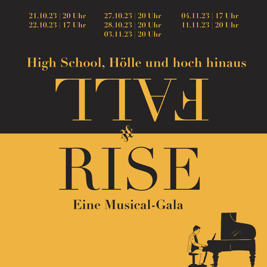 "Geh in unserer Musicalgala mit uns durch die Höhen und Tiefen der menschlichen Natur. Besuch mit uns die High- school-Diven in Heathers und den moralischen Untergang. Stell in Chicago fest, dass Lüge und Wahrheit nicht so weit auseinanderliegen. Erlebe in Bring it on die Abgründe, in die sich Menschen begeben, um groß herauszukommen. Begleite uns nach der Pause in die Unterwelt von Hade- stown und vielleicht auch wieder heraus, bevor du die Zeit ticken hören kannst. Sie macht Tick, Tick...Boom!"