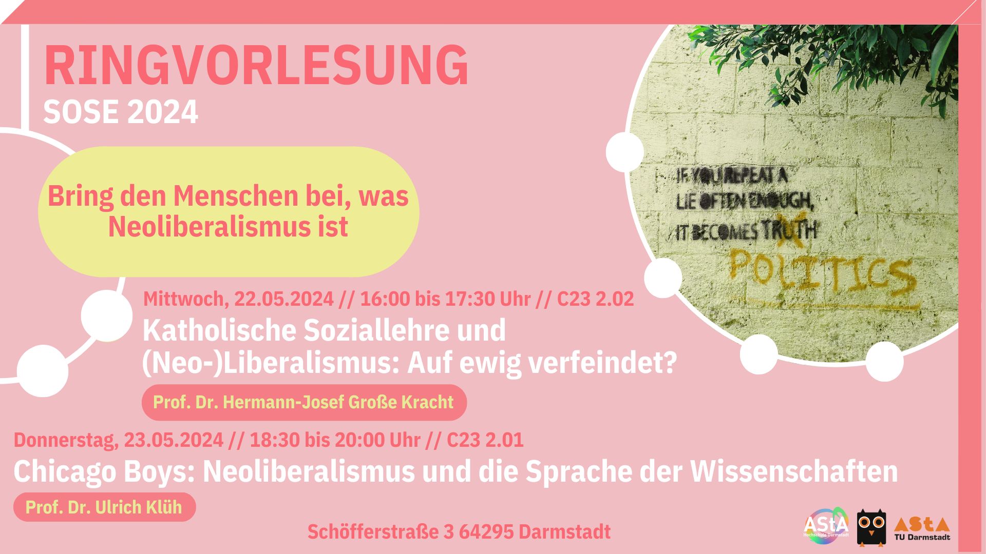 Der Begriff Neoliberalismus steckt voller Herausforderungen. Man kann ganz unterschiedliche Dinge darunter verstehen. Im Vortrag wollen wir uns dem Begriff nähern, indem wir die Sprache des Neoliberalismus in den Blick nehmen. Diese Sprache entwickelt sich weiter, und bei dieser Weiterentwicklung haben die Wirtschaftswissenschaften eine entscheidende Rolle inne. In den letzten Jahrzehnten war dabei die Auseinandersetzung mit Finanzmärkten prägend. Im Vortrag nähern wir uns dem Begriff Neoliberalismus aus der Perspektive der kritischen Analyse von Theorien zu Finanzmärkten. Dabei werden sowohl dogmengeschichtliche Themen (also der Beitrag gewisser Theorien zum Neoliberalismus) als auch aktuelle Themen aus dem Bereich der Klimapolitik behandelt.