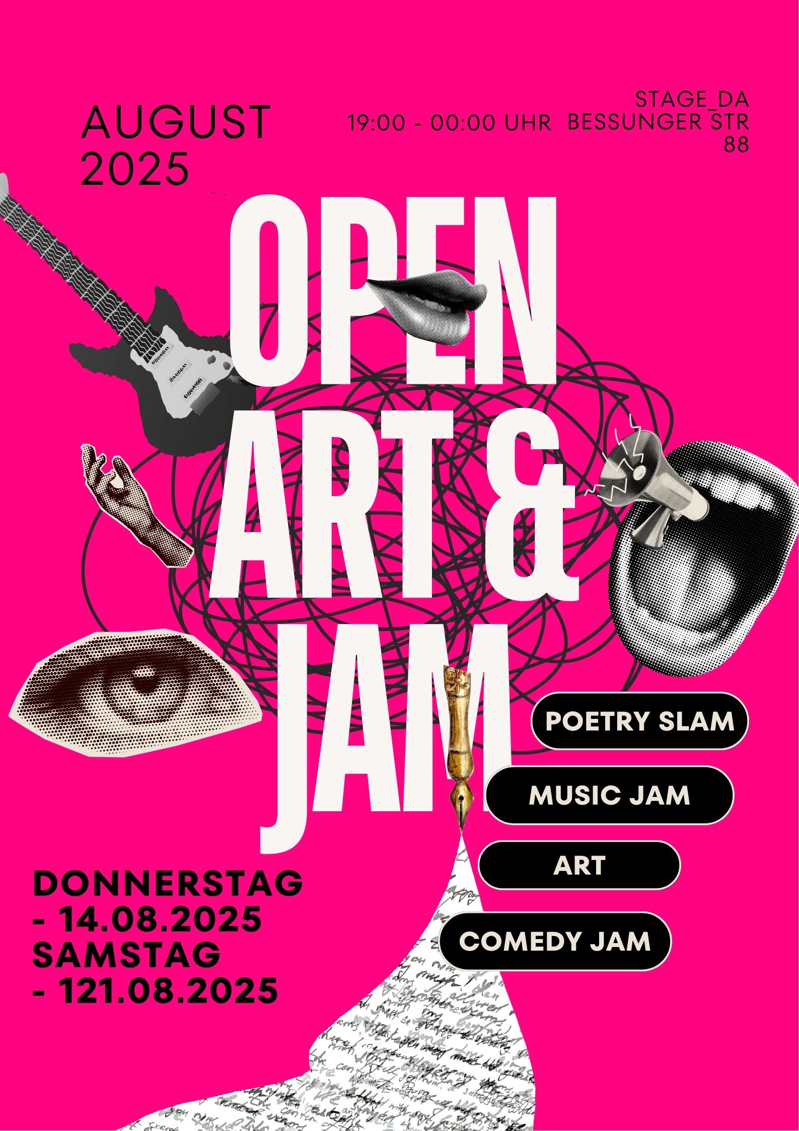 Ob du spontan performst, deine Kunst ausstellst oder einfach die kreative Atmosphäre aufsaugst – bei Open Art & Jam ist Platz für alle Ideen und Ausdrucksformen."