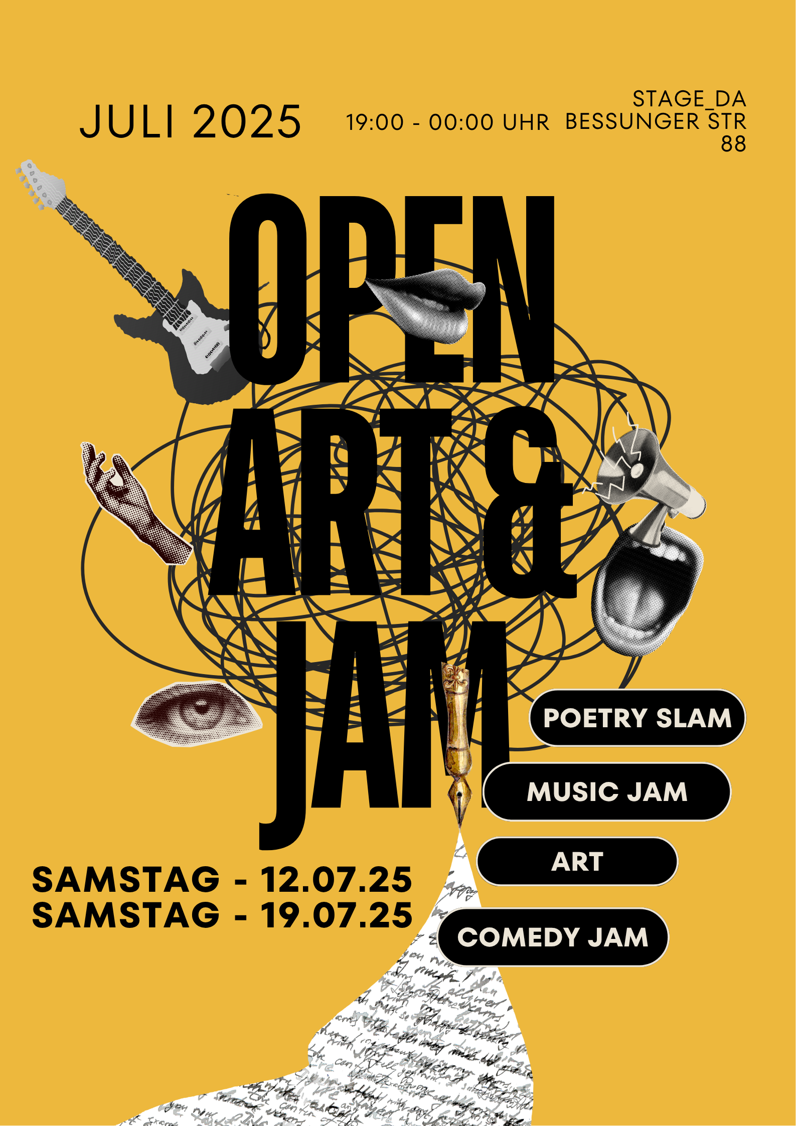 Musik, Gemälde, Comedy, Poetry & Spoken Word – Künstler*innen aus allen Bereichen stehen live auf unserer Bühne und teilen ihre Kunst mit euch!"