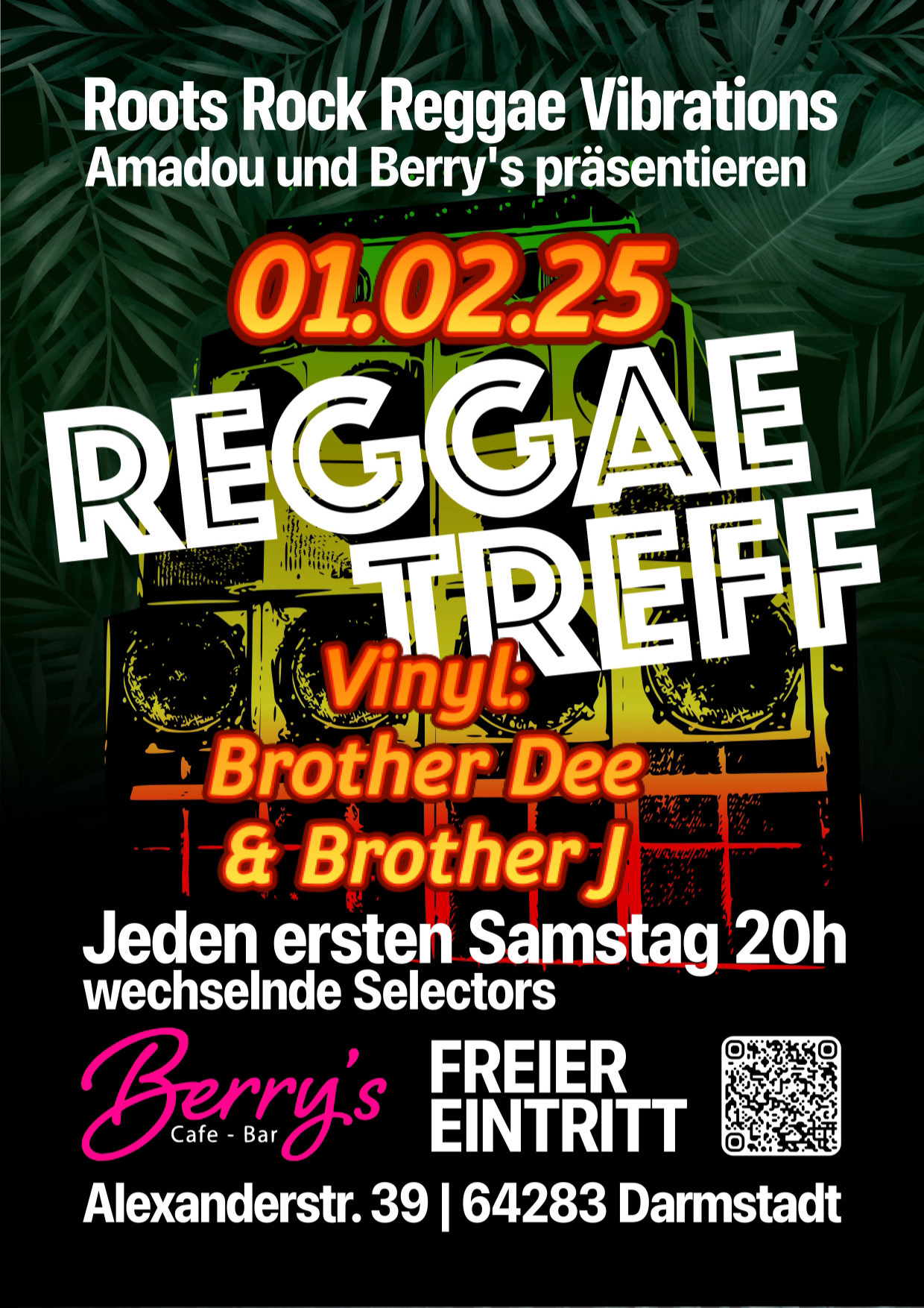 An jedem 1. Samstag im Monat findet im Berry's der Reggae-Treff statt. Es legen Selectors aus der lokalen Szene auf.