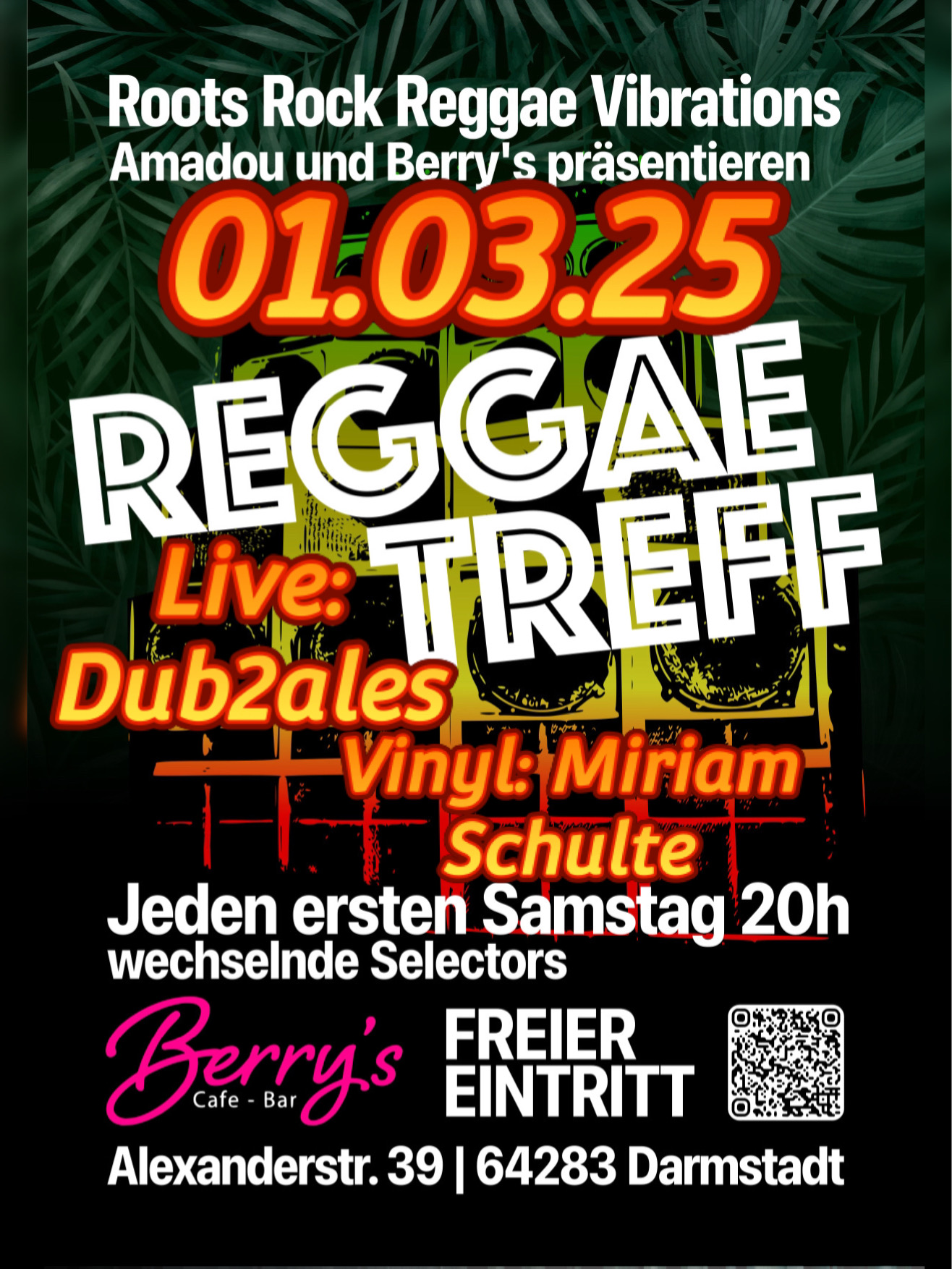 An jedem 1. Samstag im Monat findet der Reggae-Treff statt. Es legen Selectors aus der lokalen Szene auf.