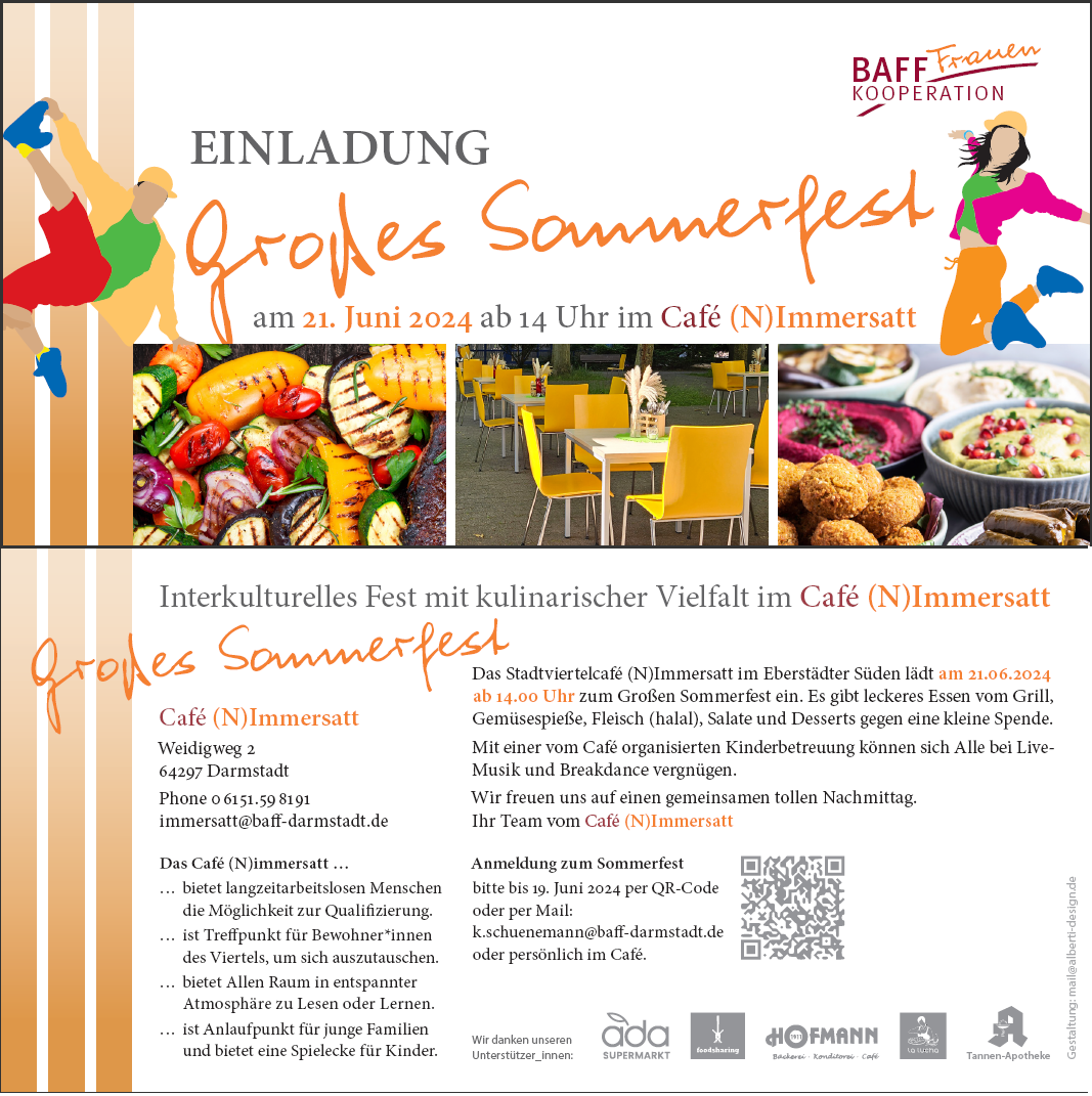 Das Stadtviertelcafé (N)Immersatt im Eberstädter Süden lädt zum Großen Sommerfest ein.
