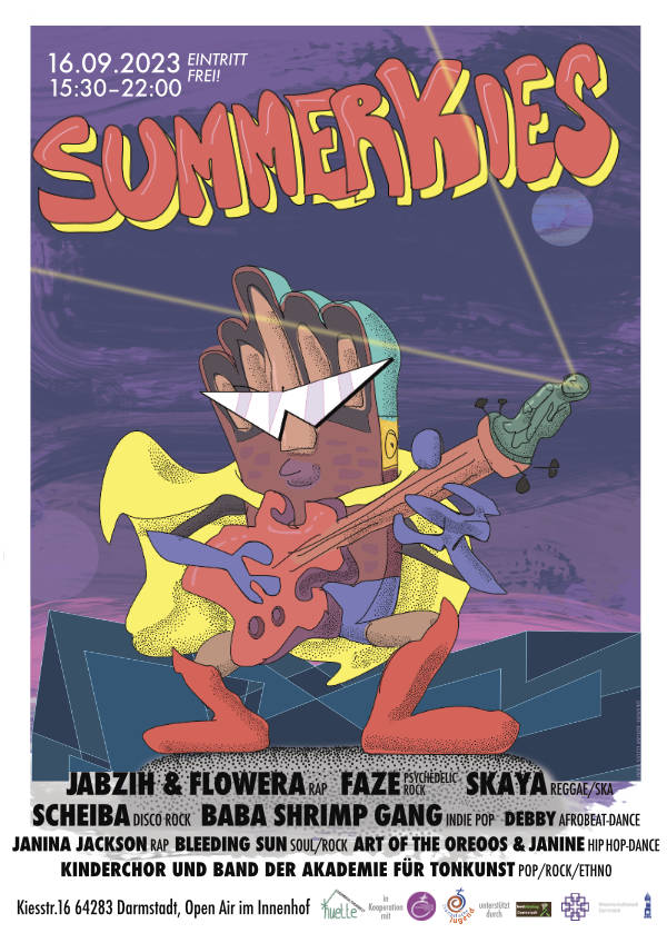 Frei nach dem Motto „Superheroes am „Kiesstrand“ hat die Jugendkulturarbeit *huette in Kooperation mit dem Evangelischen Stadtjugendpfarramt Darmstadt und der Evangelischen Jugend wieder ein Kulturprogramm im Innenhof von K16 zusammengestellt.