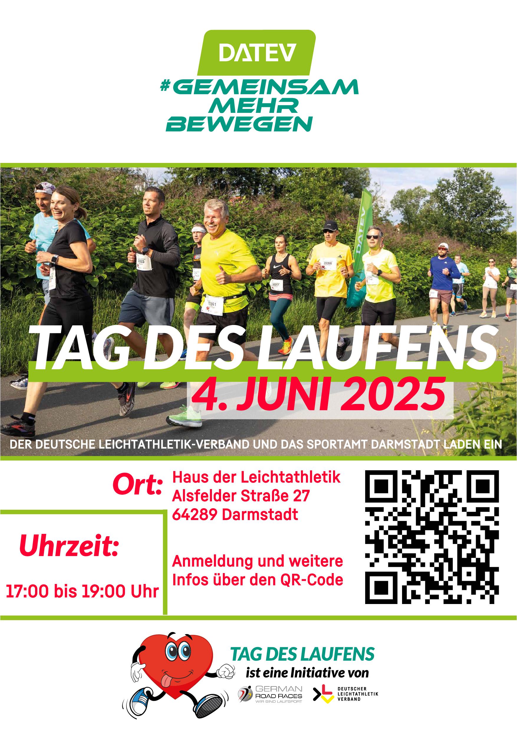 Am 4. Juni lädt der Deutsche Leichtathletik-Verband gemeinsam mit dem Sportamt Darmstadt zum Mitlaufen ein. Treffpunkt ist ab 17 Uhr vor dem Haus der Leichtathletik im Darmstädter Bürgerpark. Auf einer abgesteckten 3-km-Runde kann in vier Leistungsgruppen mitgelaufen werden – von Walking bis Fortgeschrittene. Auch Stars der Leichtathletik sind mit am Start. Im Anschluss gibt’s Musik, Snacks, Drinks und eine kostenfreie Abkühlung im DSW-Freibad. Einfach vorbeikommen und mitlaufen!