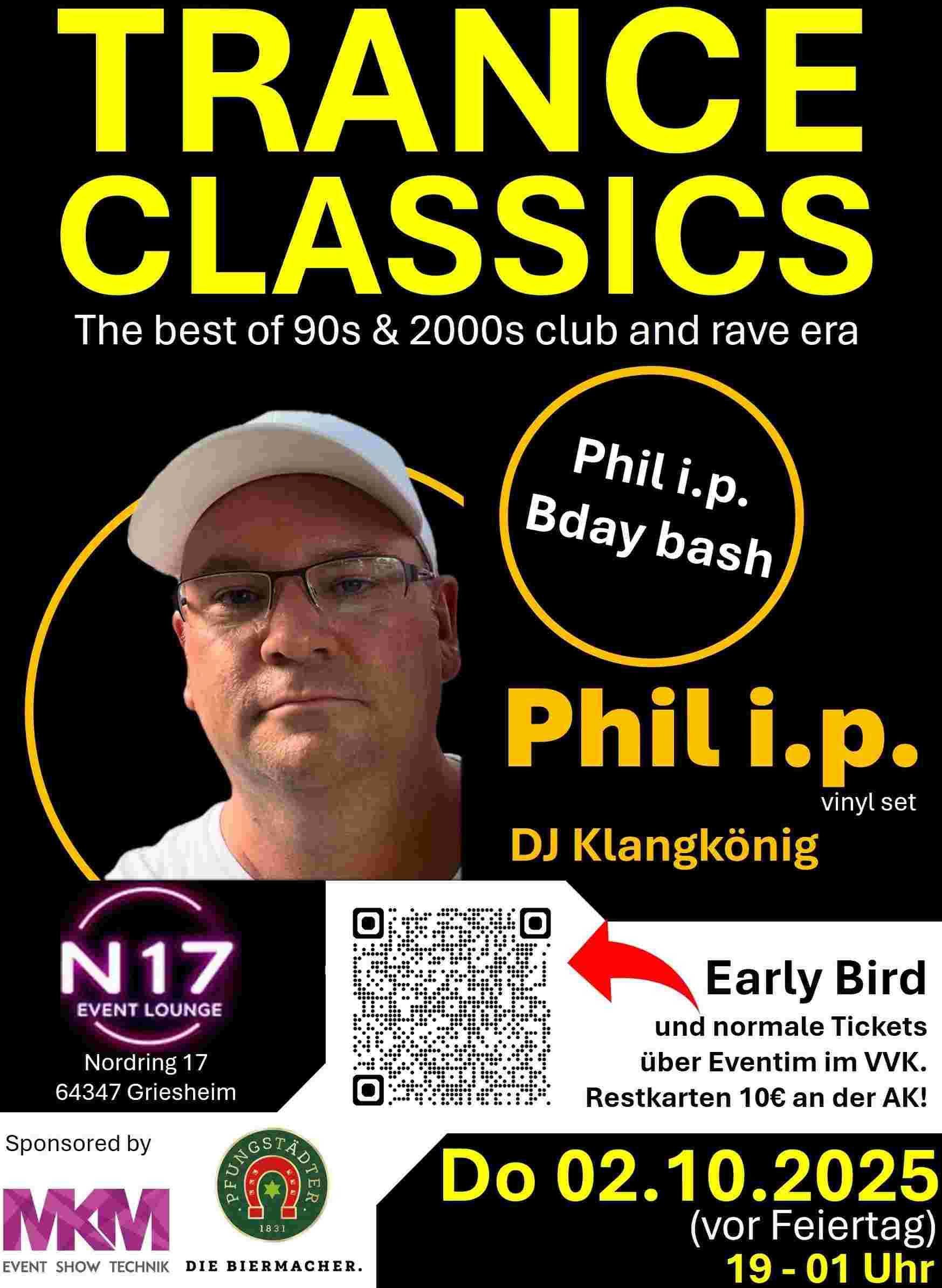Zu Gast ist Phil i.p., der bereits seit über 30 Jahren auflegt und ein Vinyl Set bestreiten wird. Seine Sets stehen für einen energiegeladenen und euphorischen Sound. Phil i.p. hat in der südhessischen Region u.a. in Clubs wie dem Prodo-X (Darmstadt), SoundZ (ehem. Paramount Park in Rödermark) oder Downtown (Weinheim) aufgelegt, bei Radiosendern wie Sunshine Live und Radio Unity gespielt, war aber auch weit über die Region hinaus in vielen Clubs und auf Events unterwegs. Dazu kommen eine Reihe von eigenen Produktionen und seine Veröffentlichung „Infinity“ unterstreicht seine Definition von Trance.