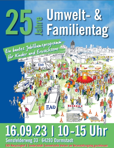 Ob Abfallentsorgung, Winterdienst oder Schulbusbetrieb: Der EAD hat in Darmstadt viele Aufgaben. Auf dem Betriebsgelände findet wieder der Tag der offenen Tür – der Umwelt- und Familientag – statt. An diesem Tag informiert der EAD über Ausbildungsberufe, Kreislaufwirtschaft und Wiederverwertung, lädt Kinder und Jugendlich zur Mitfahrt in Abfallfahrzeugen oder Kehrmaschinen ein. Ein umfangreiches Kinderprogramm mit Vorführungen, Kinderschminken und Gewinnspielen runden das Angebot ab. Der Eintritt ist frei. Getränke und Speisen können vor Ort erworben werden.